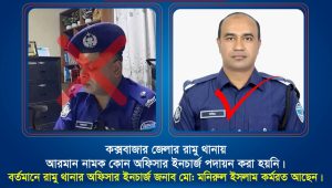 রামু থানার ওসি পদে আরমানের নামে ভুল তথ্য ছড়াচ্ছে, বর্তমান ওসি মো: মনিরুল ইসলাম